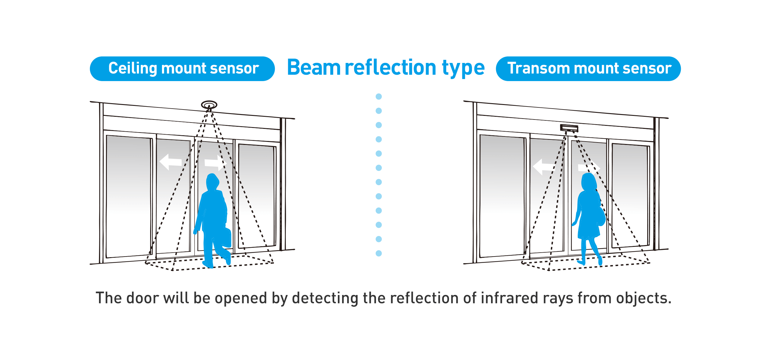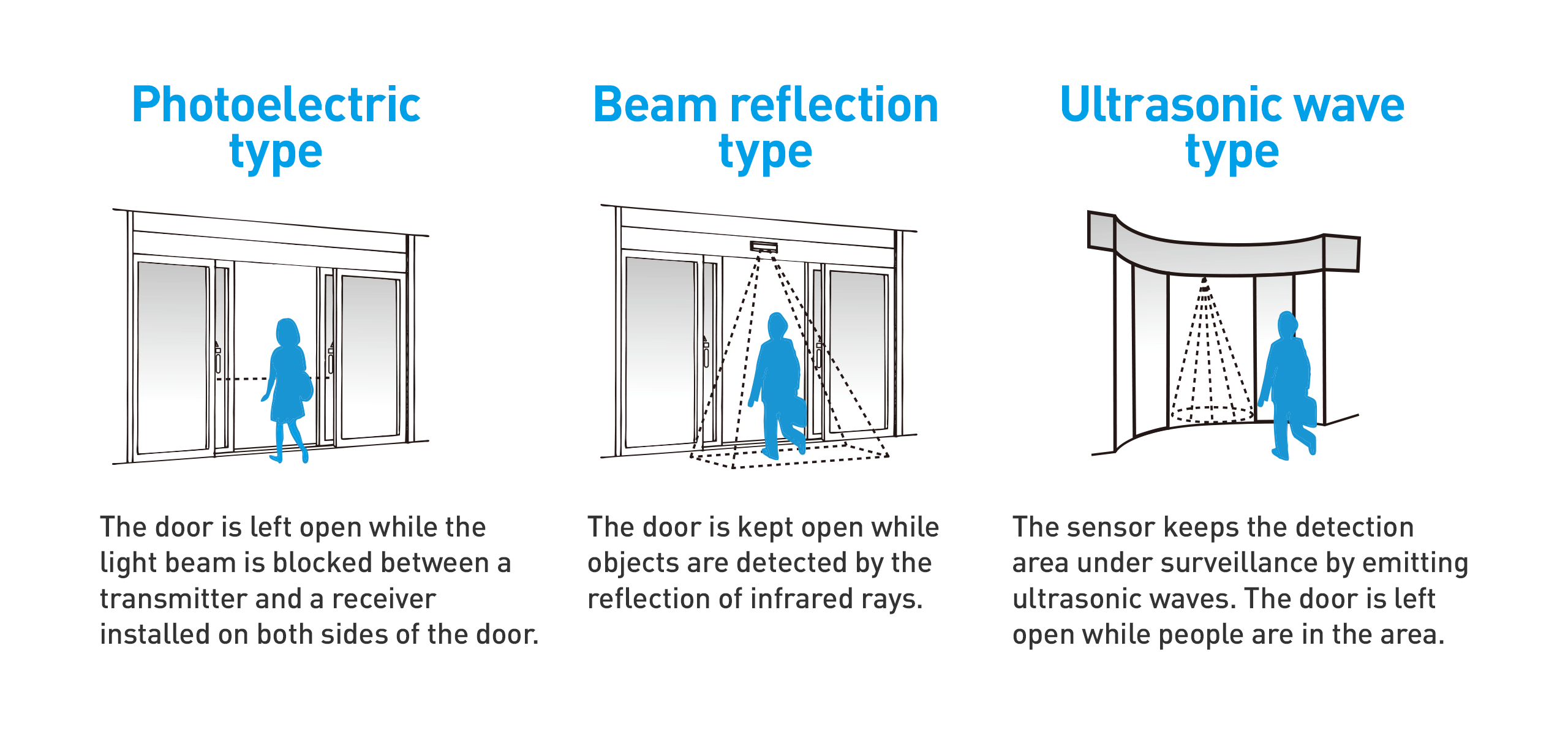 Pintu otomatis dilengkapi dengan dua jenis sensor, sensor aktivasi dan sensor pendukung.
