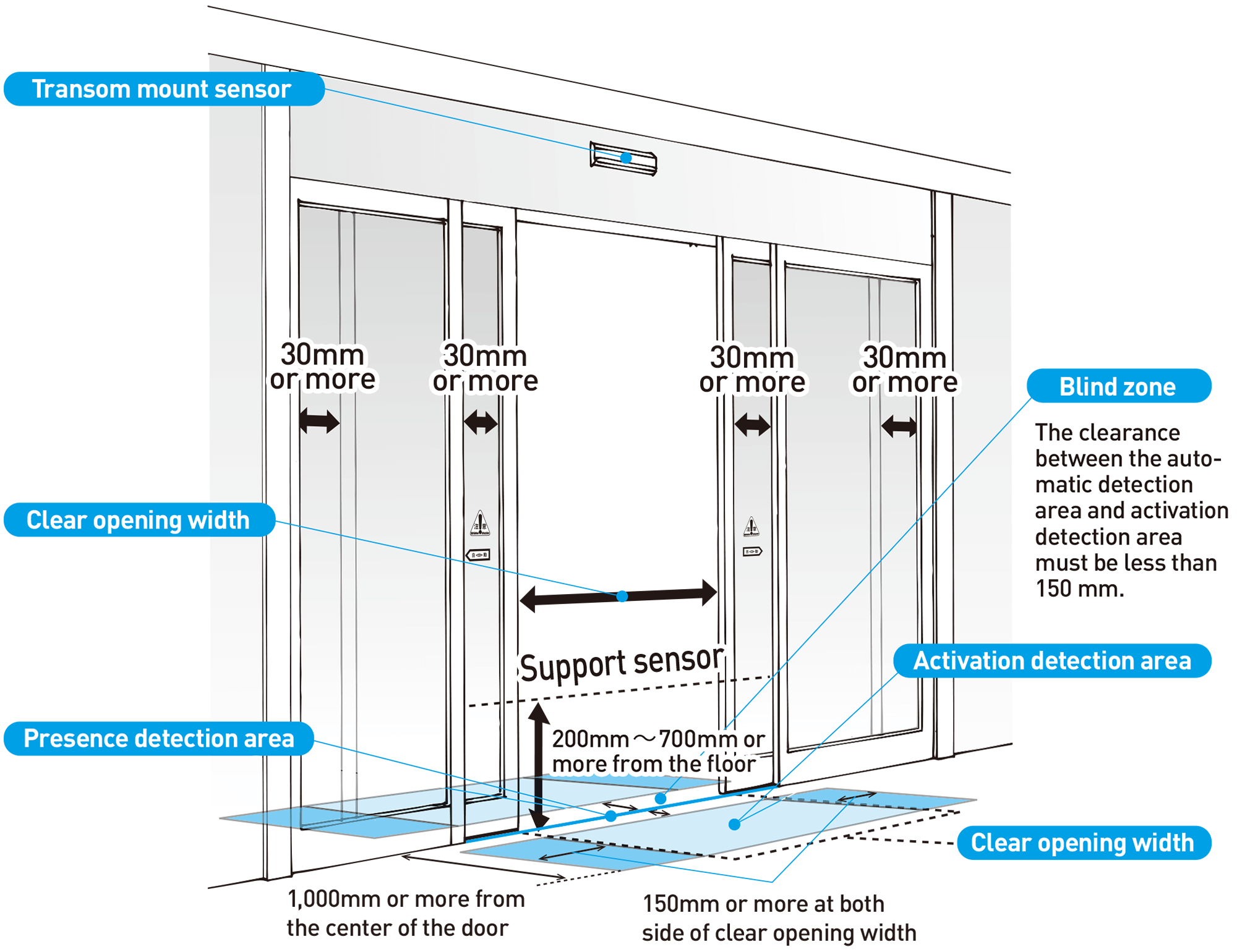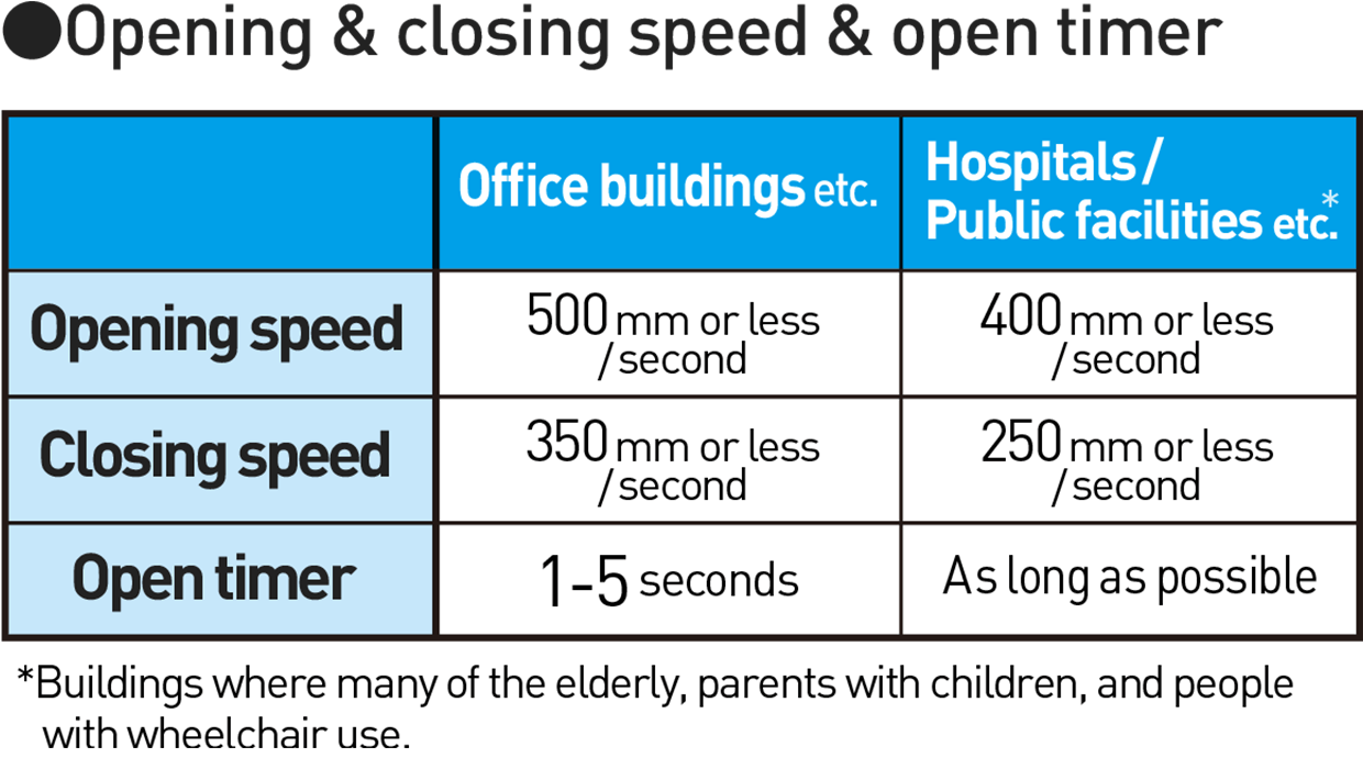 Asosiasi Pintu Otomatis Jepang (JADA) menerbitkan Panduan Keselamatan untuk Pintu Otomatis untuk meningkatkan kesadaran akan keselamatan saat menggunakan pintu otomatis. Meskipun pintu otomatis dirancang dengan cermat untuk memastikan keselamatan, risiko tetap ada, mulai dari tahap pemasangan hingga penggunaan sehari-hari. Oleh karena itu, pemahaman dan kerja sama dari para pihak terkait seperti pemilik, arsitek, dan lain-lain sangat penting untuk menyediakan akses yang aman dan mudah bagi semua orang.