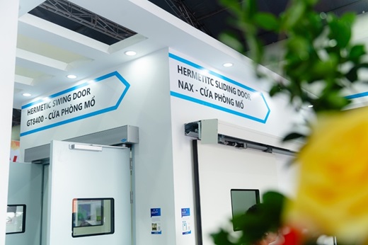 Di stan NABCO yang luas dan berdesain terbuka, kami memamerkan pintu geser kedap udara NAX (kelas kedap udara 4), pintu ayun kedap udara GT8400, dan pintu medis MD untuk ruang operasi rumah sakit dan ruang bersih pabrik.