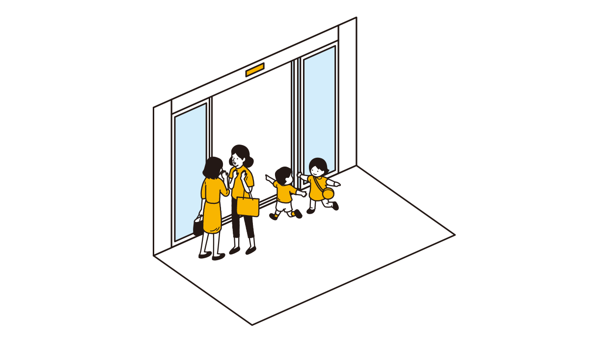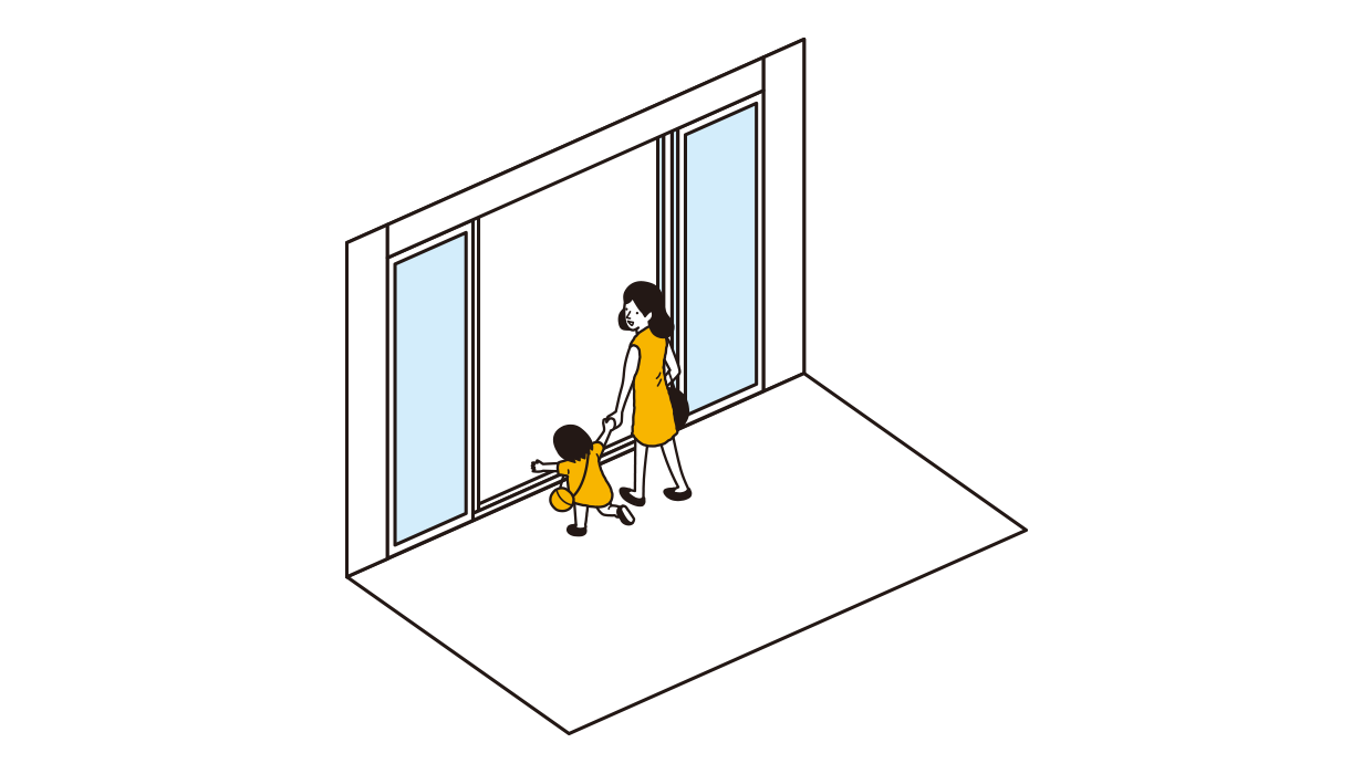 Temani anak-anak dengan memegang tangan mereka saat melewati pintu.