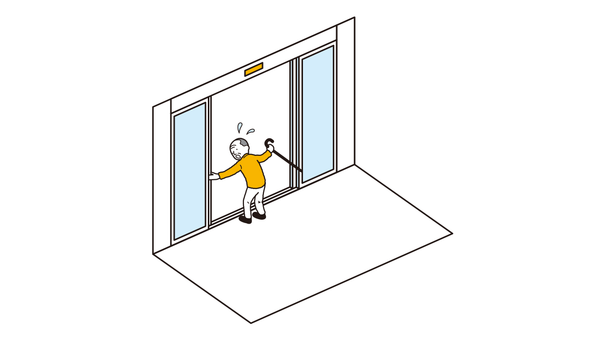 Berikan perhatian khusus ketika ada penyandang disabilitas fisik atau tuna netra yang melewati pintu.